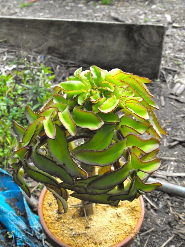 این ساکولنت غیرمعمول دارای برگهای بزرگ به رنگ سبز-آبی با گیاهچه هایی با حاشیه دندانه دار است.