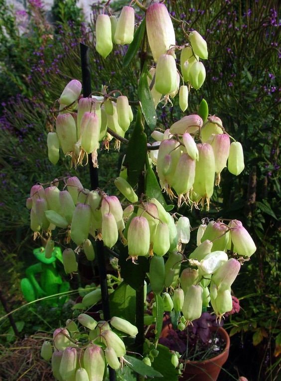 گل ها زنگولهای شکل و در رنگهای پاستلی ظاهر میشوند.