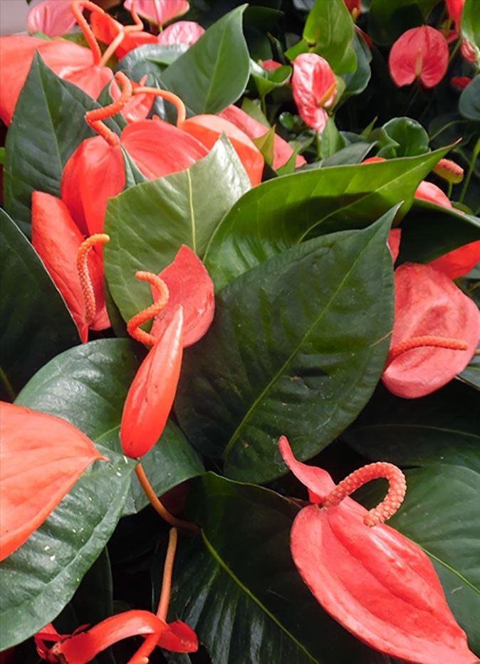 آنتوریوم حدود 1000 گونه دارد و بدلیل اسپاتهای رنگی و برگهای زیبا جایگاه ویژهای در گل آرایی دارد.