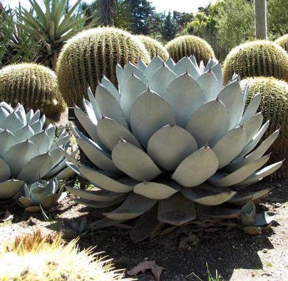این گونه همیشه سبز است و بدلیل زیبایی برگهای سبز آبی تا خاکستری خود معروف است. کاکتوس آگاو در این نوع به خاکهایی با زهکشی بالا نیاز دارد و در خاکهای سنگین دچار پوسیدگی ریشه میشود. در برابر سرمای شدید زمستان
