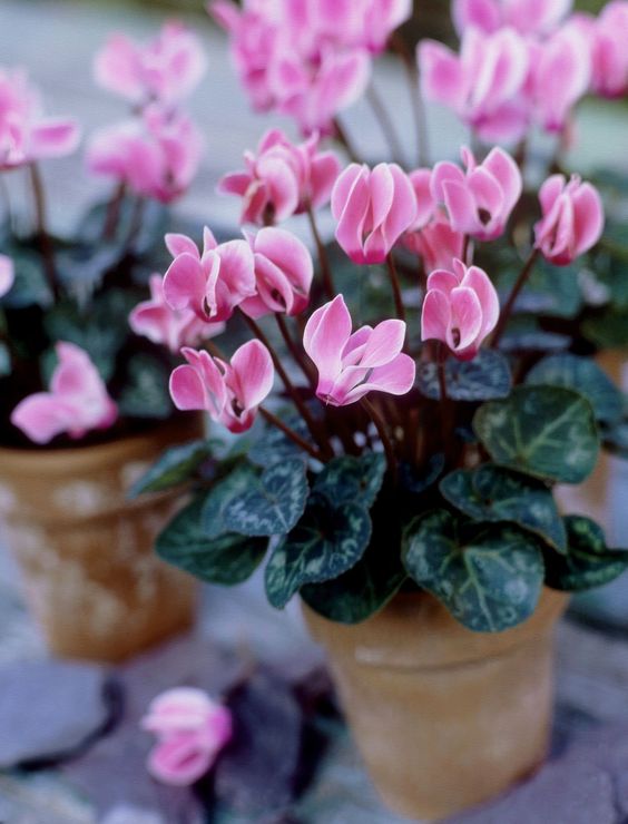 گل‌های سیکلامن، معطر و در رنگ‌های مختلف صورتی، قرمز، ارغوانی و سفید هستند.