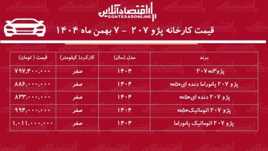 قیمت جدید کارخانه پژو ۲۰۷ اعلام شد + جدول بهمن ۱۴۰۴