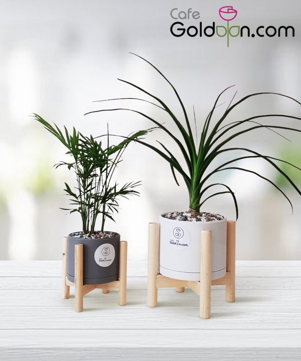 مجموعه شامادورا و لیندا با گلدان پلیمری پایه دار چوبی